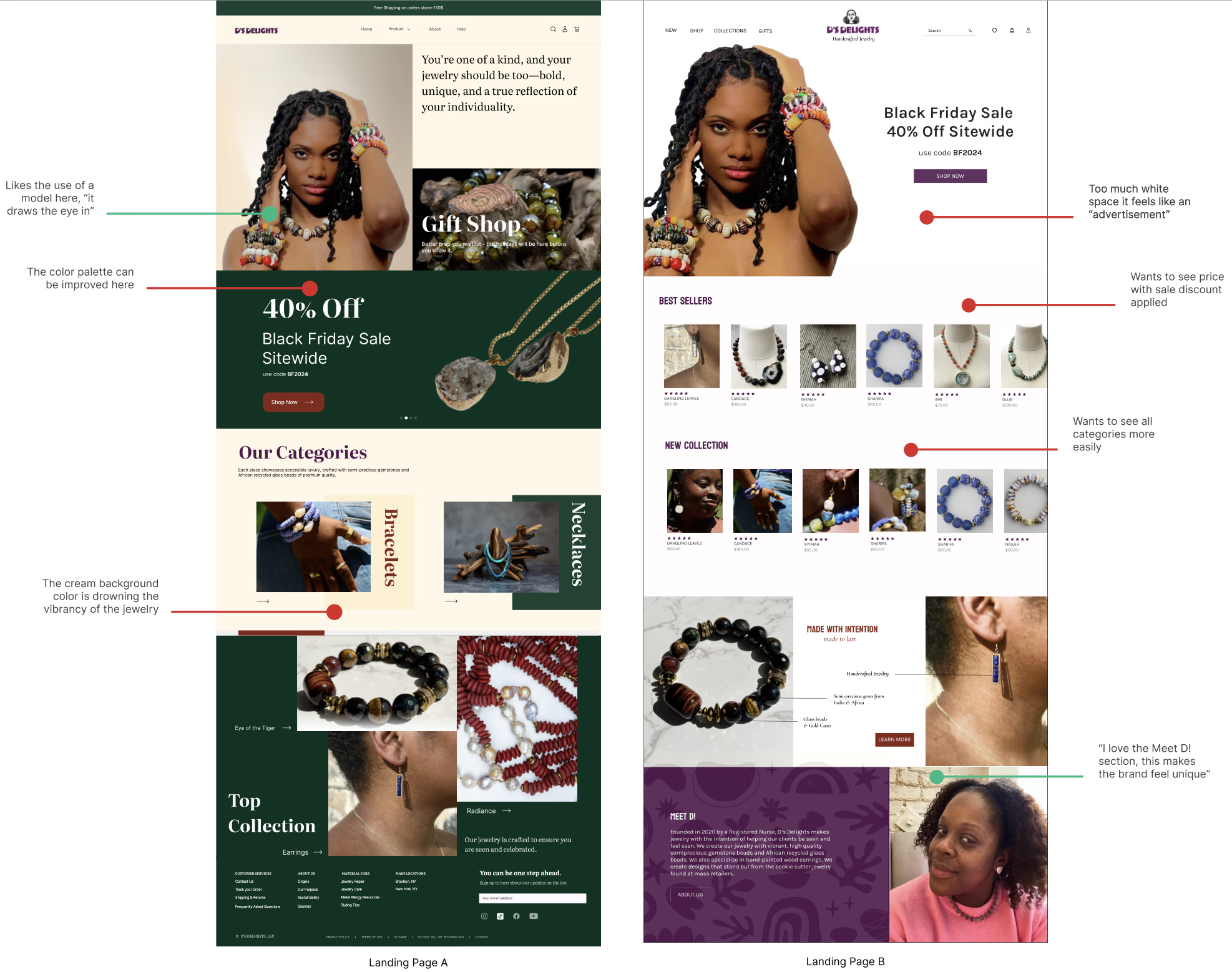 A digital transformation for D's Delights, a handcrafted African bead jewelry brand in Brooklyn, NY. My team and I designed an e-commerce site, social media rebranding, and brand guideline.