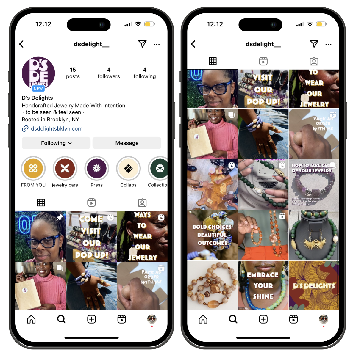 By creating a content calendar we increased user satisfaction and engagement. A lot of the content was based around giving Deidra a platform to show the behind the scenes of her jewelry and her story. People we interviewed repeatedly requested more authentic social media content to understand what makes D's Delights special.